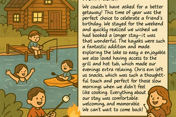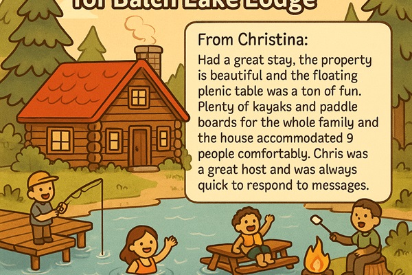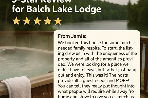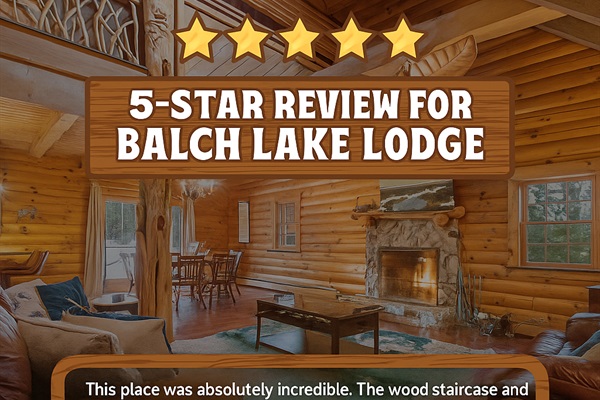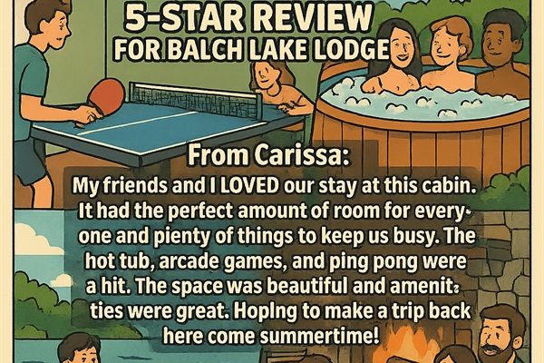 Unwind and reconnect with nature in your private backyard at this spacious cabin on Balch Lake’s quiet shores.